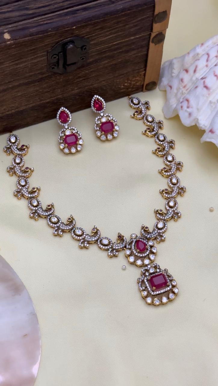 92.5 silver ruby moissanite neck set